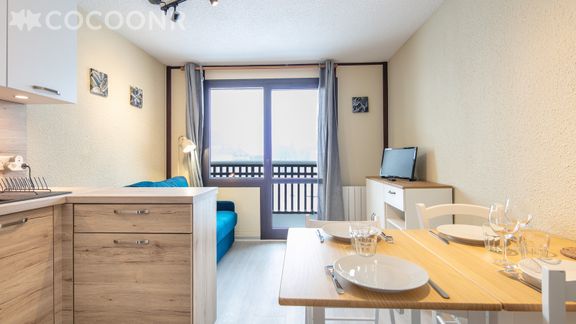 L'agence Cocoonr vous propose à la location, à Chamrousse, ce studio d’une superficie de 19 m² et pouvant accueillir jusqu’à 4 voyageurs. Situé au 11ᵉ étage (avec ascenseur), il se compose d’une pièce à vivre de 15 m², d'une kitchenette équipée, d'une salle d'eau (avec douche).