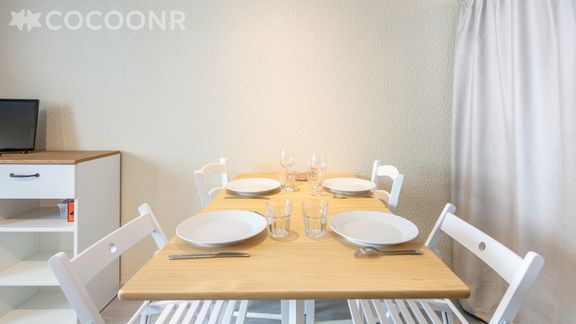 - Un balcon de 3 m², exposé est, pour profiter des beaux jours, équipé d'une petite table et de deux chaises pliantes.