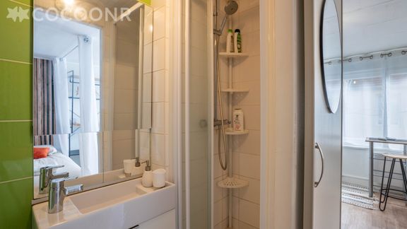 - Une salle d'eau avec une douche, une vasque, un sèche-cheveux et un WC.