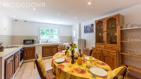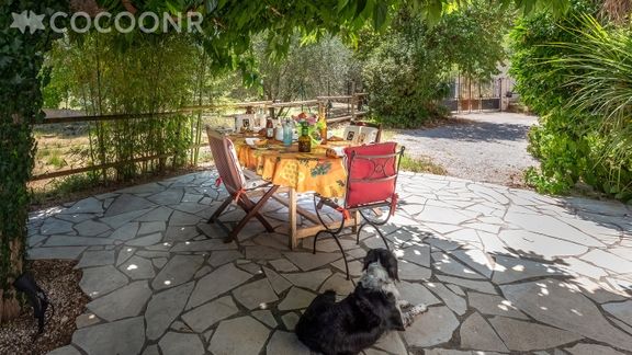 - L'appartement est situé au rez-de-chaussée d'une maison d'hôte où réside la propriétaire. Le jardin et la piscine sont partagés avec cette dernière ainsi qu'avec le reste des locations sur la propriété.