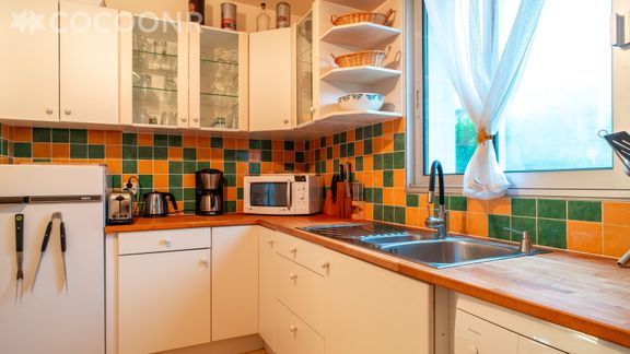 - Une cuisine équipée avec notamment : bouilloire électrique, four, four à micro-ondes, grille-pain, lave-vaisselle, plaques de cuisson...