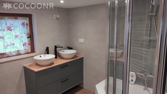 - Une salle de bain avec hauteur sous plafond d'environ 1,80 m