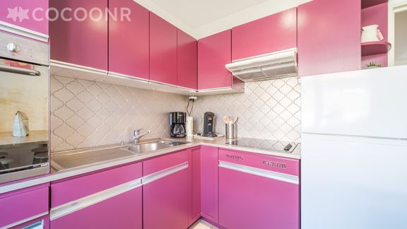 - Une cuisine équipée avec notamment : bouilloire électrique, four, four à micro-ondes, grille-pain, lave-vaisselle, plaques de cuisson...