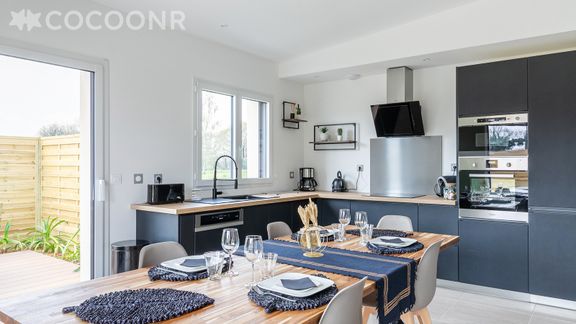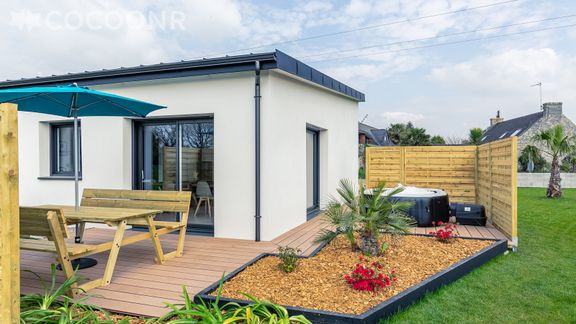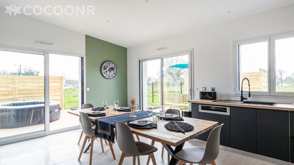 Nous vous proposons à la location, sur la commune de Combrit, cette charmante maison contemporaine de plain-pied avec jacuzzi, d’une superficie de 100 m² et pouvant accueillir jusqu’à 6 voyageurs. Elle est composée d’une jolie pièce à vivre de 40 m², d'une cuisine équipée, de trois belles chambres, une salle d'eau et vous pourrez profiter d’un jardin d’environ 600 m². Wifi et draps inclus, serviettes non fournies. Nous n’attendons plus que vous !