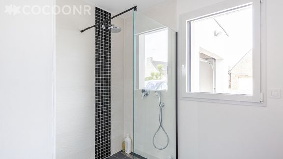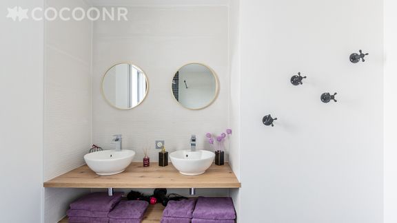 - Une salle d'eau avec douche à l'italienne et double vasque.