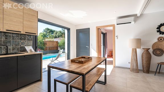 L'agence Cocoonr vous propose à la location, à Conca, cette charmante villa climatisée, à moins de 100 m de la plage de Favone, avec piscine privée, d’une superficie de 72 m² et pouvant accueillir jusqu’à 6 voyageurs. Elle est composée d’une jolie pièce à vivre de 40 m², d'une cuisine équipée, de deux belles chambres, de deux salles de bain (avec douche et baignoire). Wifi, draps et serviettes inclus, nous n’attendons plus que vous !