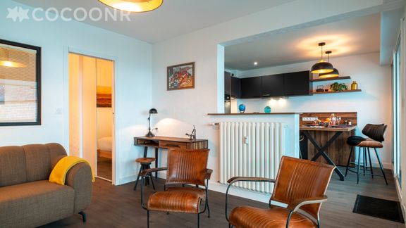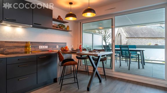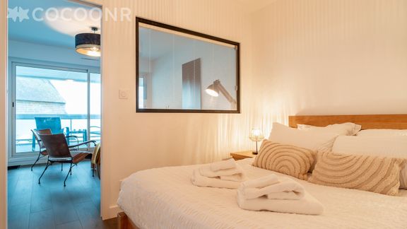 L'Agence Cocoonr/Book&Pay vous propose, à Concarneau, cet appartement avec vue mer, à moins de 5 minutes à pied des plages La Corniche, Cornouaille, d’une superficie de 45 m² et pouvant accueillir jusqu’à 2 voyageurs. Situé au rez-de-chaussée, il se compose d’une pièce à vivre de 11m², cuisine équipée, d’une chambre, une salle d'eau (avec douche). Wifi, draps et serviettes inclus, nous n’attendons plus que vous !