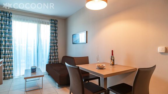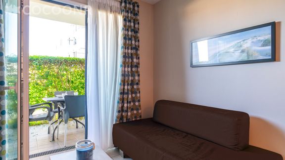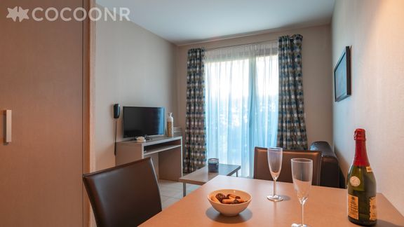 🙁 L'appartement est mal placé situé au rez-de-chaussée dans un coin sans soleil sur la terrasse .L''entré pour la piscine est situé à côté de la chambre .Tout s'entend! Le passage des personnes de l'extérieur qui l' utilisent la piscine le bruits des bips de code