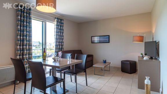 Très bon séjour, et bon emplacement il n'y a qu'a traverser la rue et on est sur la plage des sables blancs, parc pour les enfants, thalasso pour les plus grands et centre ville à proximité. Appartement agéable, propre et fonctionnel, assez calme.