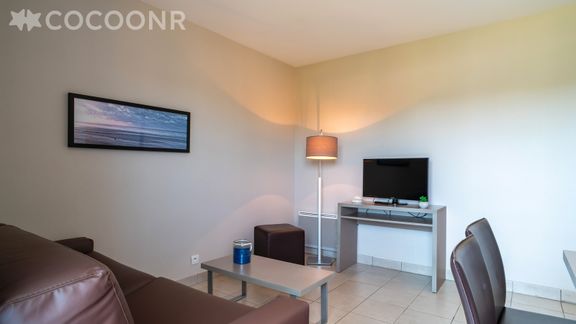- Une pièce de vie de 20 m² avec canapé, TV, coin repas