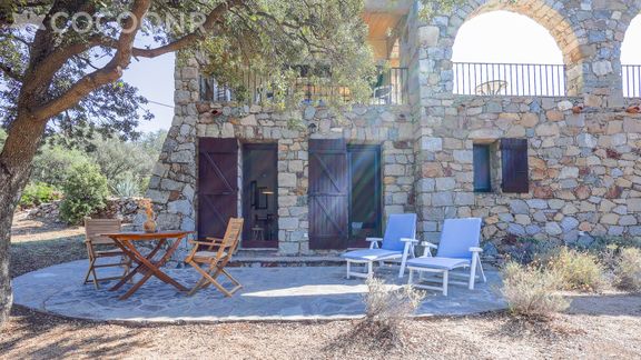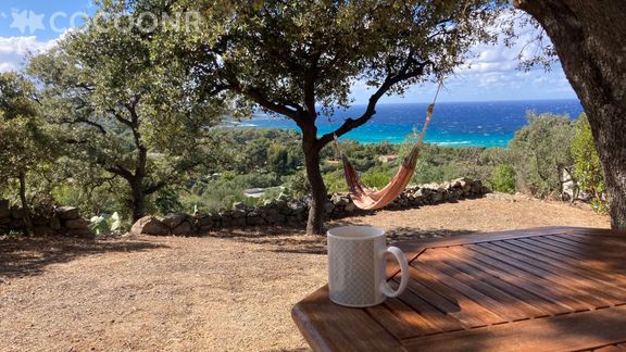 - Le studio est situé dans un grand terrain privatif de 2500 m², non clôturé. Le jardin a une végétation typiquement corse avec des chênes, des oliviers, des buissons de lauriers roses et des cactus.