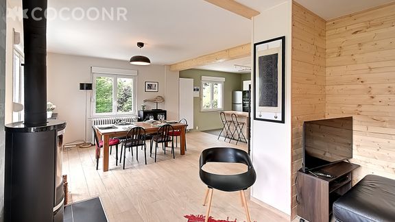L'agence Cocoonr/Book&Pay vous propose à la location, sur la commune de Cornimont, cette charmante maison sur sous-sol orientée "Sud-Ouest" avec vue montagne, d’une superficie de 110 m² et pouvant accueillir confortablement 6 voyageurs. Situé au rez-de-chaussée, elle se compose d’une jolie pièce à vivre avec poêle à bois, d'une cuisine ouverte équipée, de trois belles chambres et de deux salles de bain (avec douche et baignoire). Vous pourrez profiter d’un jardin d’environ 500 m² ! Wifi (fibre optique) inclus, nous n’attendons plus que vous !
