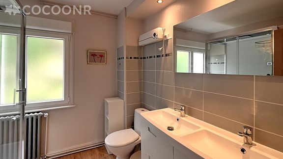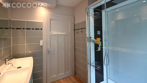 - Une salle d'eau avec cabine de douche zénithale et WC
