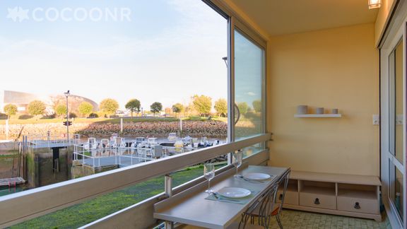 - Une loggia de 7 m², exposée nord avec mobilier et vue sur le port de plaisance