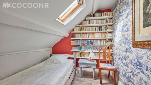 - Chambre 3 : chambre mansardée avec un lit simple (90x190)