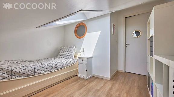 - Chambre 3 (mansardée) : un lit simple avec un lit tiroir, idéal pour des enfants.
