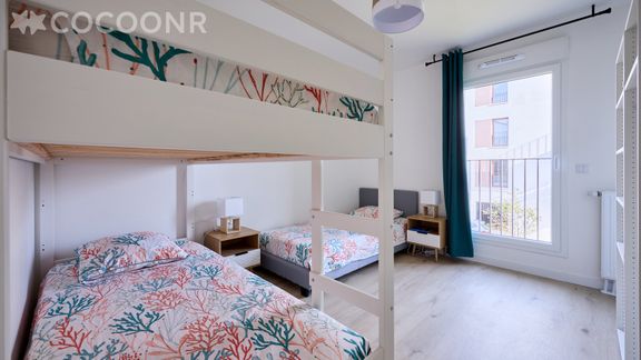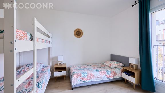 - Chambre 2 : avec un lit simple et un lit superposé (3 couchages au total)