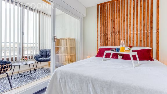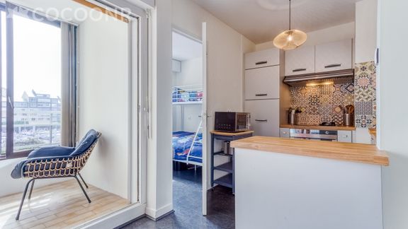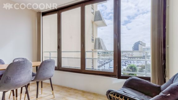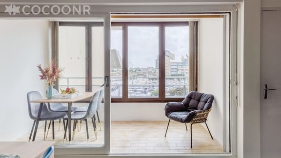 - Une loggia de 6 m² accessible depuis la pièce de vie aménagée avec une table et des chaises pour profiter d'un repas avec vue sur la marina !