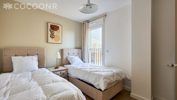 - Chambre 2 (9 m²) : deux lits simples, armoire
