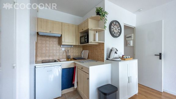 - Une cuisine équipée avec notamment : four à micro-ondes, grille-pain, plaques de cuisson...