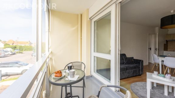 - Un balcon fermée avec deux baies qui s'ouvrent de 6 m² avec table et chaises situé au sud