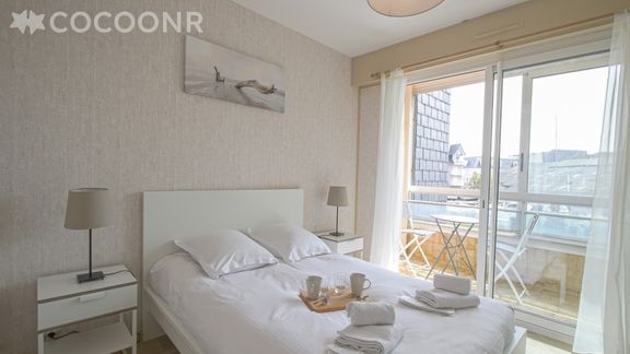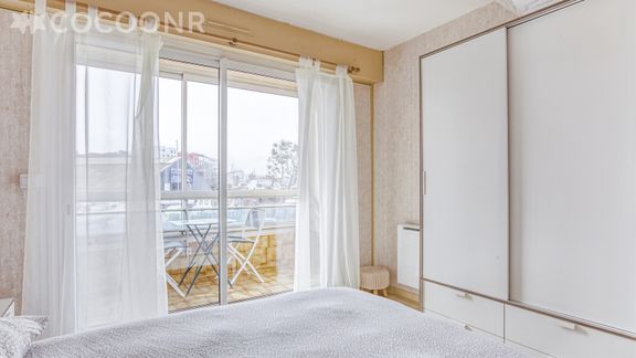- Une grande chambre dotée d'un lit double, une grande armoire et un accès direct a une loggia via une grande baie vitrée