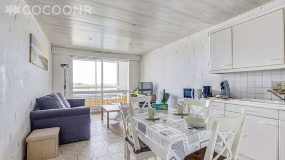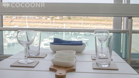 L'Agence Cocoonr/Book&Pay vous propose à la location, ce bel appartement avec une vue directe sur l'embouchure de la Seulles et situé à seulement quelques pas du port de plaisance de Courseulles-sur-Mer. Ce logement de 46m², moderne et à la décoration soignée, dispose d'un séjour-salon aménagé avec accès direct à une loggia par une grande baie vitrée, une kitchenette entièrement équipée, une grande chambre donnant sur une seconde loggia, ainsi qu'une salle d'eau. Draps et serviettes inclus, nous n'attendons plus que vous !