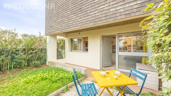 - Une terrasse couverte de 9m² et un espace pelouse de 11m². Le jardin est clos, une table, des chaises ainsi qu'un barbecue à charbon sont à votre disposition pour profiter des beaux jours