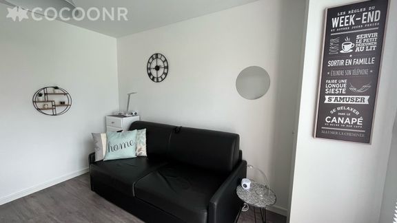 Petit studio sympa, proche des restaurants, de la plage et d’une boulangerie. Malheureusement le canapé gris que j’avais vu sur l’annonce et qui m’avait bêtement donné encore plus envie de venir dans ce logement n’est pas du tout le même qu’en vrai. À la place nous avons eu un petit canapé clic clac en faux cuir (ce que je n’apprécie pas vraiment de base) pas très grand mais confortable lorsqu’il est déplié mine de rien.