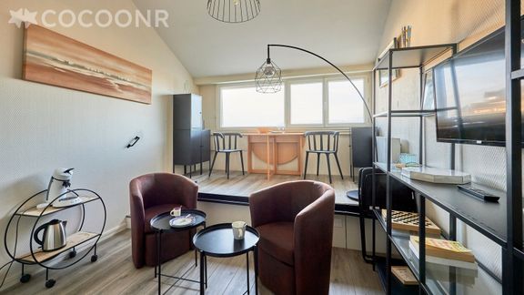 L'Agence Cocoonr/Book&Pay vous propose, à Courseulles-sur-Mer, cet appartement avec vue port, à 200 mètres de la plage, d’une superficie de 28 m² et pouvant accueillir jusqu’à 2 voyageurs. Situé au 5e étage (ascenseur jusqu'au 4ème étage et un étage avec escaliers), il se compose d’une pièce à vivre de 19 m², cuisine ouverte équipée, d’une chambre, une salle d'eau (avec douche). Wifi inclus, nous n’attendons plus que vous !