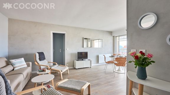 très beau logement bien équipé ( miroir , joli vaisselle, nombreux verres, combi four et micro ondes , barbecue électrique). il est fidèle à la description avec sa jolie vue sur le port de plaisance . super restaurant et boulangerie au pied de l' immeuble . communication facile et bon accueil.