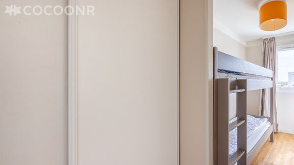 Il y a 2 chambres (une avec un lit double, une avec 2 lits superposés), et je pense qu'on peut même dormir sur les canapés du salon. Les deux salles de bain sont également un réel atout de ce logement.