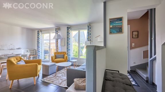 L'Agence Cocoonr/Book&Pay vous propose, à Courseulles-sur-Mer, cette charmante maison à moins de deux kilomètres de la plage, d’une superficie de 72 m² et pouvant accueillir jusqu’à 8 voyageurs. Elle est composée d’une jolie pièce à vivre de 25 m², d'une cuisine ouverte équipée, de deux belles chambres, d'un bureau, d'une salle de bain (avec baignoire) et vous pourrez profiter d’un jardin d’environ 160 m². Nous n’attendons plus que vous !