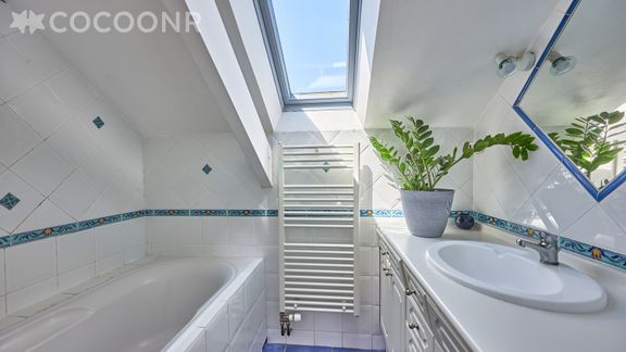 La maison sur deux étages est lumineuse spacieuse et bien équipée petit bémol la salle de bain qui est petite et mansardée avec une baignoire sans rideau pas facile de se doucher sans mouiller par terre