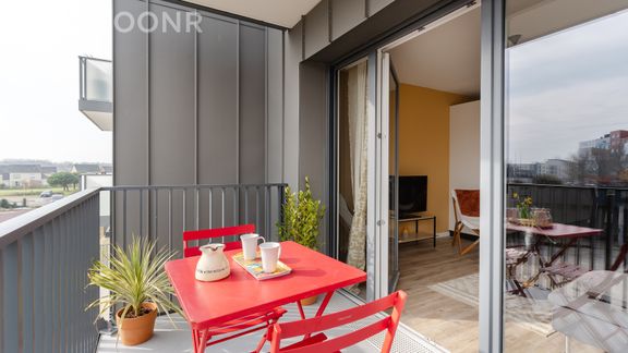 - Un balcon de 5 m² avec une table et deux chaises pour profiter des beaux jours