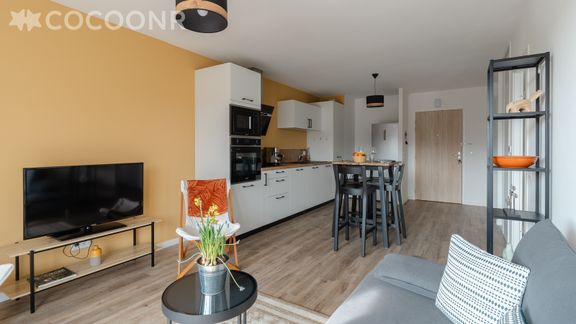 L’appartement est tout neuf ainsi que l’immeuble, il y a le port les restaus et la plage juste à côté, pas besoin de voiture. Le lave linge séchant en supplément était top. J’ai adoré la déco ??