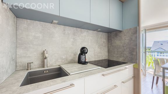 - Une cuisine équipée refaite à neuf en 2022 avec notamment : bouilloire électrique, four, four à micro-ondes, grille-pain, lave-vaisselle, plaques de cuisson, cafetière à dosettes Dolce Gusto...