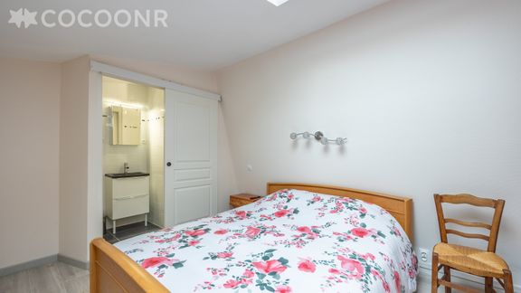 - Chambre 1 : un lit queen-size (160×200), salle d'eau intégrée avec douche et WC