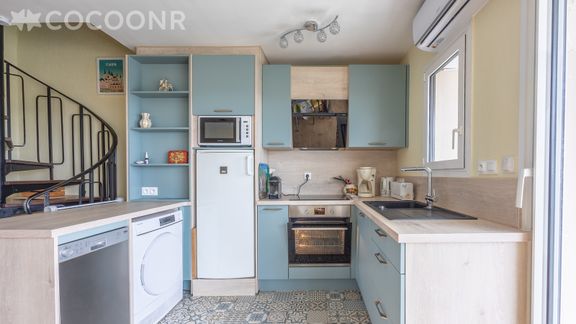 Nous avons beaucoup aimé l’appartement : propre, cosy, bien équipé, avec une superbe vue panoramique sur le port et la mer. Le balcon, avec deux chaises et une table, permettait de profiter de magnifiques couchers de soleil (6e étage avec ascenseur). L’emplacement est parfait : à 5 min de la mer, à deux pas du marché des pêcheurs et entouré de restaurants. Les chambres à l’étage sont accessibles par un petit escalier en colimaçon ; il y a assez de place pour 4-5 personnes (nous étions 3, dont un enfant de 2 ans). Le balcon mériterait un petit nettoyage supplémentaire, mais cela reste un détail. Les instructions d’arrivée, envoyées par MMS avec photos, étaient très claires. Nous reviendrons avec plaisir !