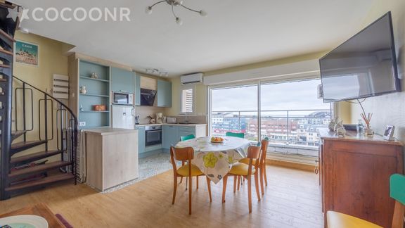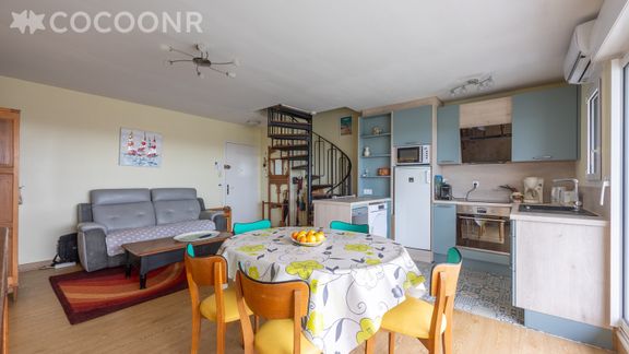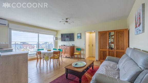 L'Agence Cocoonr/Book&Pay vous propose, à Courseulles-sur-Mer, cet appartement à moins d’un kilomètre de la plage, d’une superficie de 56 m² et pouvant accueillir jusqu’à 5 voyageurs. Situé au 6e étage (avec ascenseur), il se compose d’une pièce à vivre de 28 m², d'une cuisine équipée, de deux chambres, de deux salles de bain. Wifi inclus, nous n’attendons plus que vous !