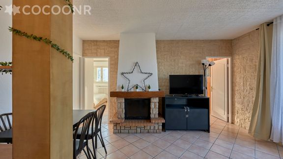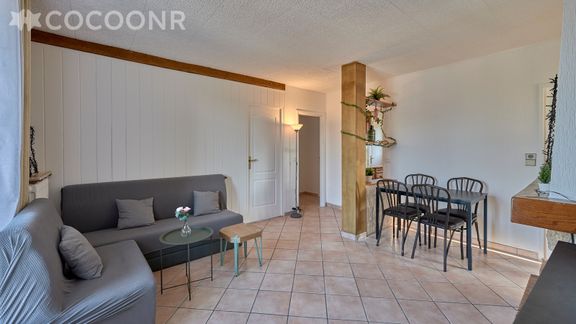 - Une pièce de vie de 62 m² avec canapé, TV, coin repas