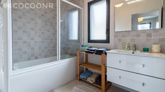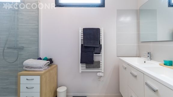 - Chambre 1 : suite parentale avec un lit double (140×190) et une salle d'eau attenante.
