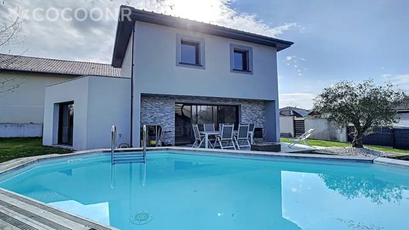 Nous vous proposons à la location, sur la commune de Dax, cette belle maison avec piscine chauffée, d’une superficie de 110 m² et pouvant accueillir confortablement 6 voyageurs. Elle est composée d’une jolie pièce à vivre de 34 m², d'une cuisine ouverte et équipée, de trois belles chambres,de deux salles de bain et vous pourrez profiter d’un jardin d’environ 600 m². Wifi, draps et serviettes inclus, nous n’attendons plus que vous !