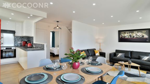 L'agence Cocoonr/Book&Pay vous propose à la location, à Dinan, ce charmant appartement en duplex d’une superficie de 100 m² et pouvant accueillir jusqu’à 8 voyageurs. Situé au 1er étage (sans ascenseur), il se compose d’une pièce à vivre de 26 m², cuisine équipée, de trois belles chambres avec TV, trois salles d'eau. Wifi inclus , nous n’attendons plus que vous !