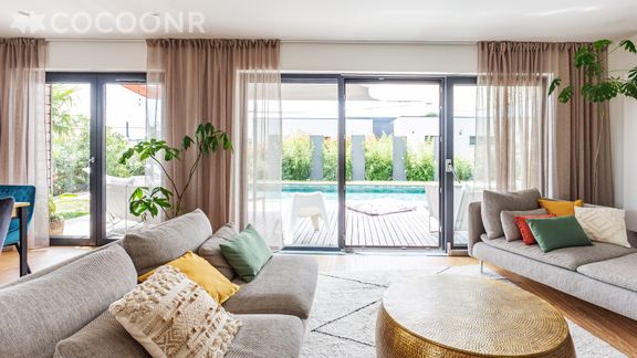 - Une première terrasse au niveau de la piscine de 45 m², exposée plein Sud, avec mobilier pour profiter des beaux jours.