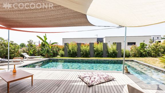 - Une piscine (privée, chauffée) en pierre de Bali, traitée par filtration au sel et chloré, ouverte de mai à fin septembre (selon saison avril et octobre possible, dates d'ouvertures non contractuelles). Un volet immergé de protection pour les enfants ou les adultes et vous aurez à disposition des accessoires de piscine.