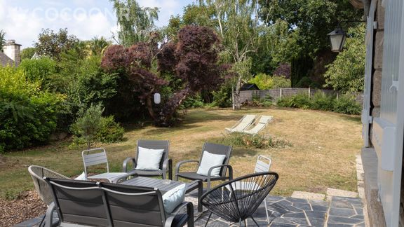 - Une belle terrasse exposée Sud/Ouest avec son mobilier de jardin (4 transats, table à manger extérieur, salon de jardin).