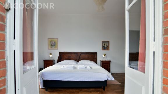 - Chambre 1 : un lit queen-size (160×200) et accès à un balcon.