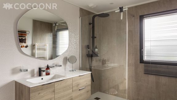 - Chambre 3 : Suite parentale qui offre de beaux volumes, elle est spacieuse et très lumineuse. Lit king-size (180x200). Il y a une belle penderie, un coin détente avec fauteuil et canapé. TV connectée. Accès direct à la salle de bain avec douche à l’italienne (sèche-cheveux et lisseur à cheveux).
