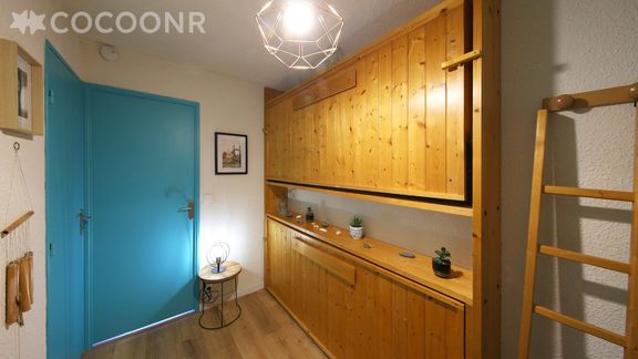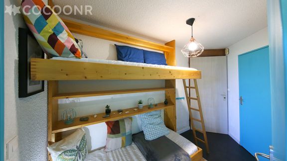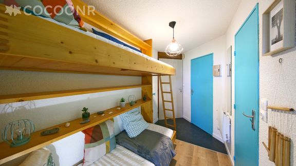 - Une entrée avec lits escamotables (seul le lit du bas est accessible à la location)